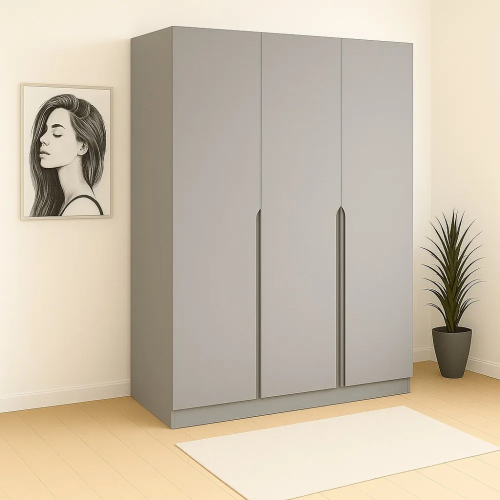 Шафа розпашна ШР6 2100х1400х450 мм корпус ДСП Сіра Мишка фасад МДФ фарба RAL7004 (Сигнальний сірий) фрезерована ручка V