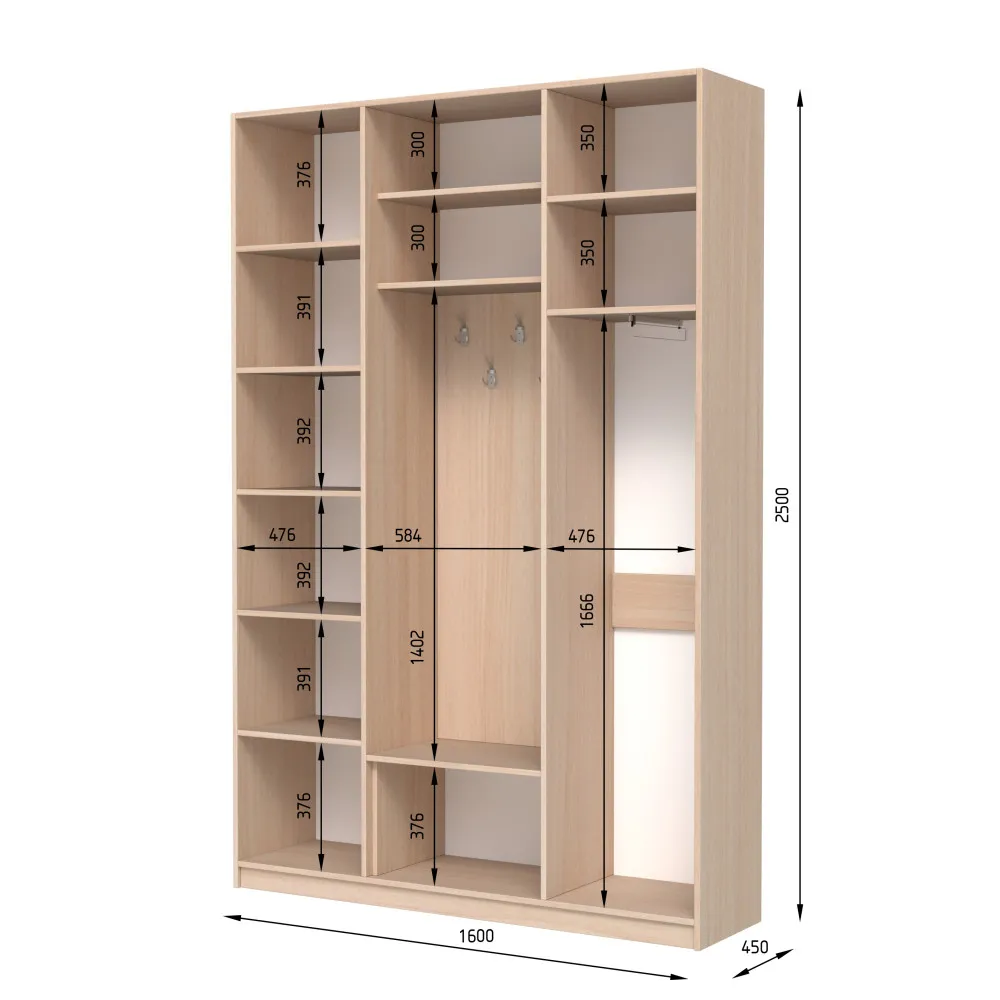 | В*Ш*Г2500х1600х450 | Глибина, мм450 | Висота, мм2500 |