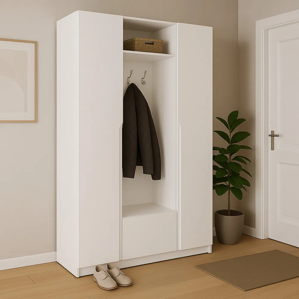 Характеристики Шафа розпашна ШР8 2600х1600х600 мм корпус ДСП Білий фасад МДФ фарба Білий (RAL9003) фрезеровані ручки V і J