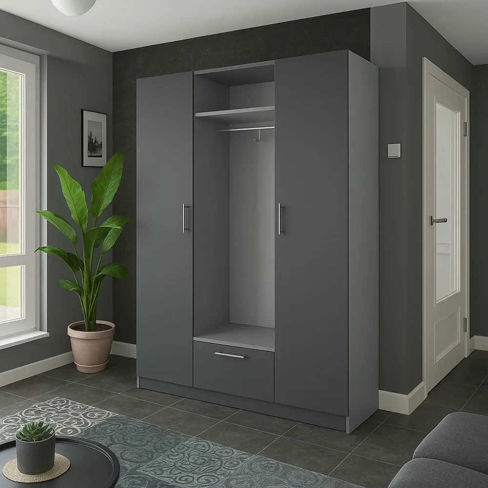 Характеристики Шафа розпашна ШР8 2600х1600х600 мм корпус ДСП Сіра Мишка фасад ДСП Сірий Графіт