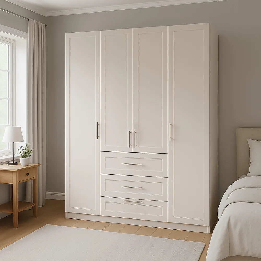 Характеристики Шафа розпашна ШР9 2400х1600х450 мм корпус ДСП Кашемір фасад МДФ фарба NCS S 2002-Y50R (Шовковистий мат) фрезерування Люнет