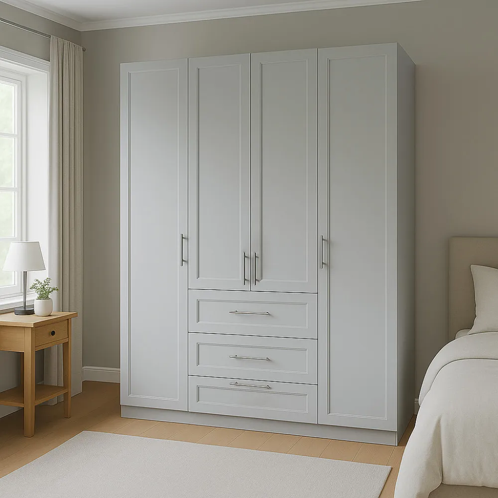 Характеристики Шафа розпашна ШР9 2600х1600х600 мм корпус ДСП Сіра Мишка фасад МДФ фарба RAL7004 (Сигнальний сірий) фрезерування Люнет
