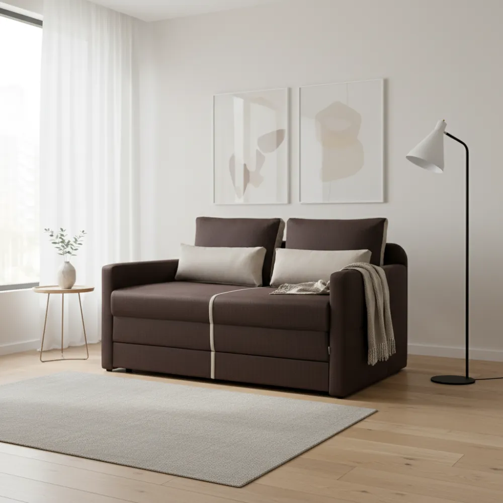 Викатний механізм, який використовується в моделі дозволяє перетворити невелику софу в ліжко розміром 200 на 140 сантиметрів. Спальне місце виходить досить просторим, так як складається така система з трьох секцій. Достатньо лише потягнути за край секції - і вона сама потягне за собою інші. Сама ж софа, завдяки такому рішенню, володіє підвищеною міцністю. Є і місткий висувний ящик для зберігання різних речей.