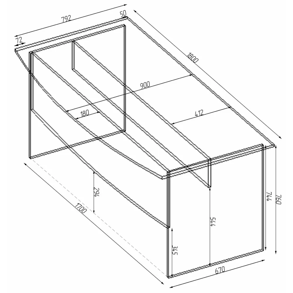 | Глибина, мм900 | Висота, мм760 | Ширина, мм1800 |