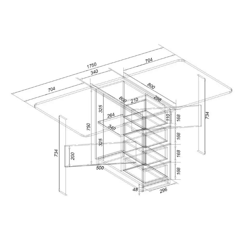 | Фурнітура | Напрямні телескопічні, петля рояльна, металева ручка. |