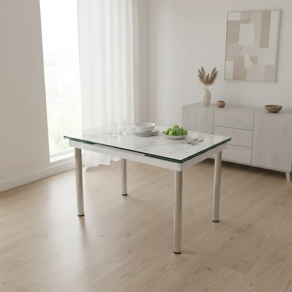 Розкладний механізм: Зручна система трансформації дозволяє швидко збільшити корисну площу столу, роблячи його чудовим рішенням для прийому гостей або сімейних обідів.