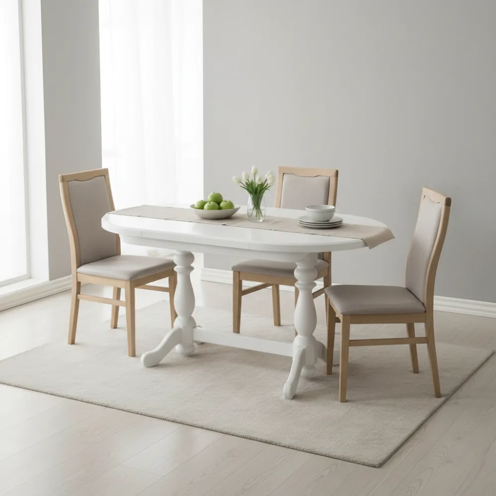 Розкладний механізм: Зручна система трансформації дозволяє швидко збільшити корисну площу столу, роблячи його чудовим рішенням для прийому гостей або сімейних обідів.