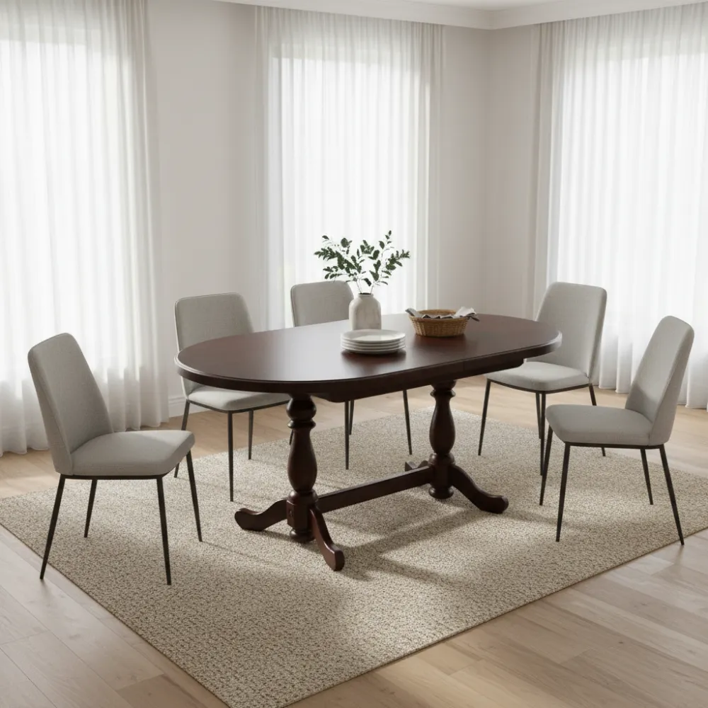 Розкладний механізм: Зручна система трансформації дозволяє швидко збільшити корисну площу столу, роблячи його чудовим рішенням для прийому гостей або сімейних обідів.