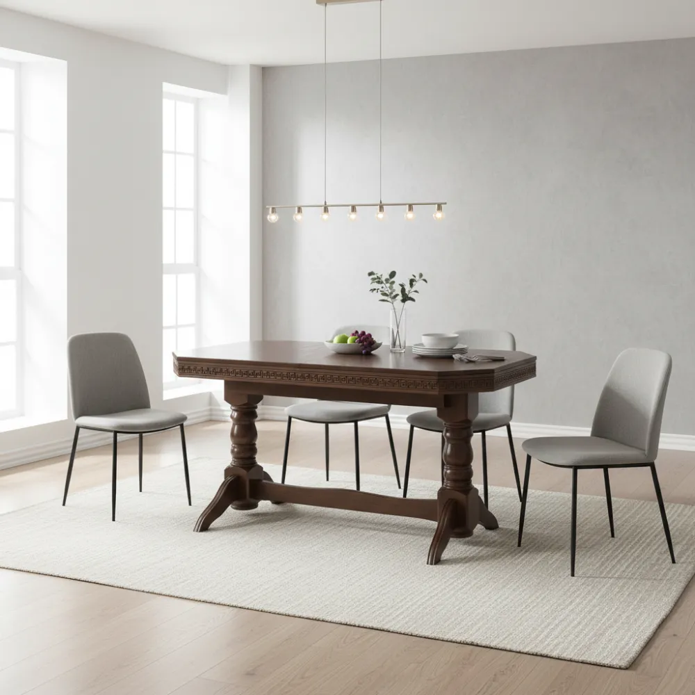Розкладний механізм: Зручна система трансформації дозволяє швидко збільшити корисну площу столу, роблячи його чудовим рішенням для прийому гостей або сімейних обідів.
