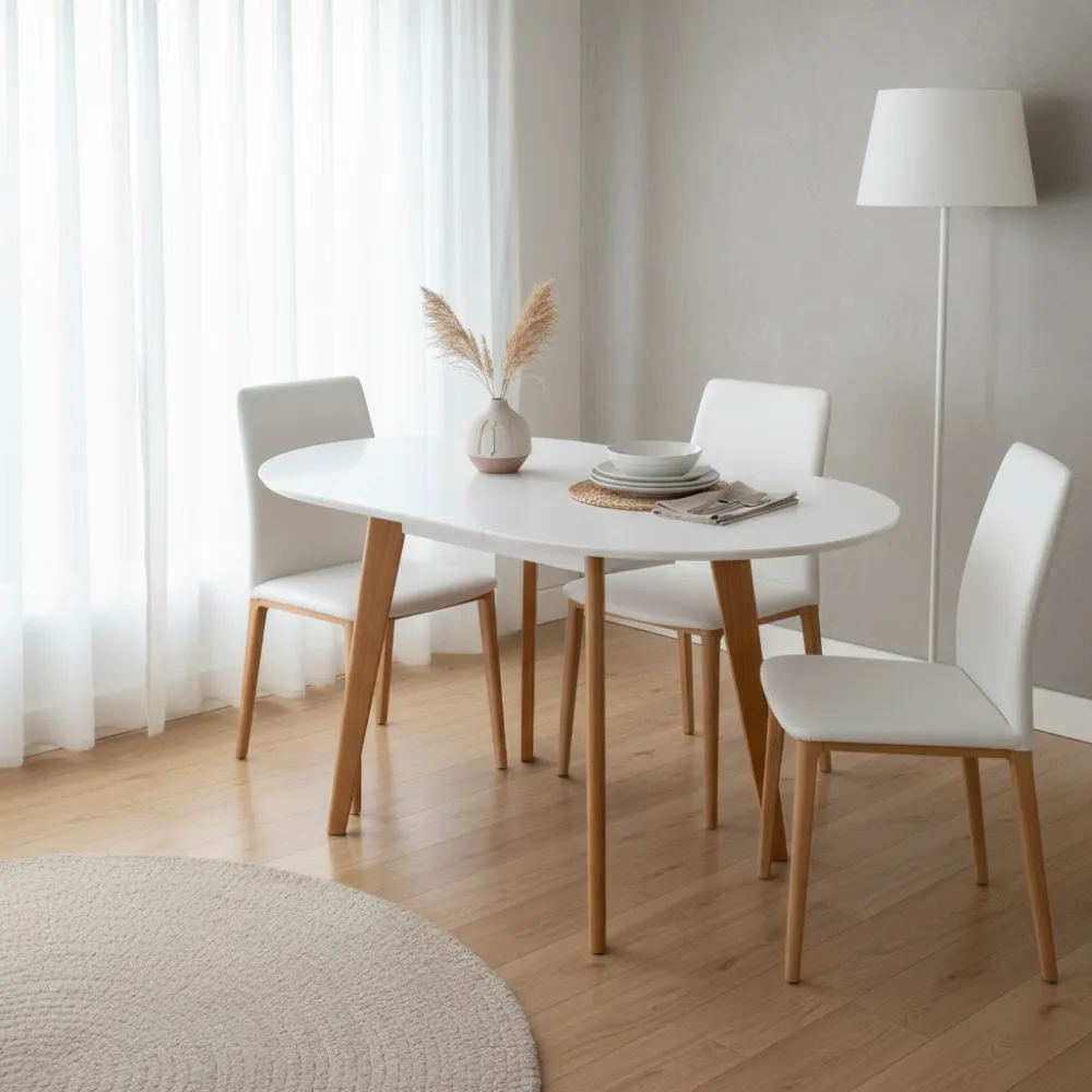 Розкладний механізм: Зручна система трансформації дозволяє швидко збільшити корисну площу столу, роблячи його чудовим рішенням для прийому гостей або сімейних обідів.