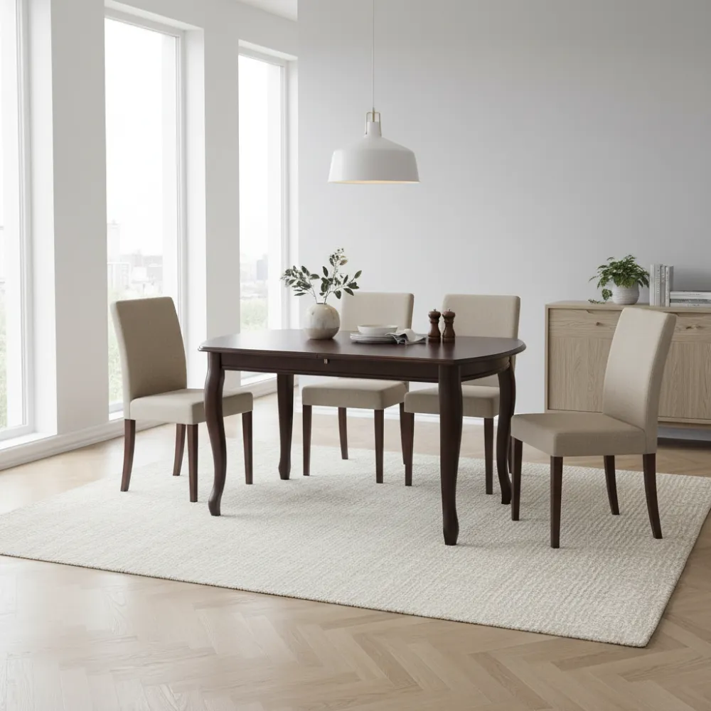 Розкладний механізм: Зручна система трансформації дозволяє швидко збільшити корисну площу столу, роблячи його чудовим рішенням для прийому гостей або сімейних обідів.