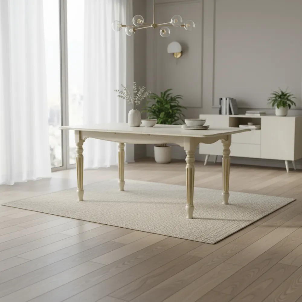 Розкладний механізм: Зручна система трансформації дозволяє швидко збільшити корисну площу столу, роблячи його чудовим рішенням для прийому гостей або сімейних обідів.