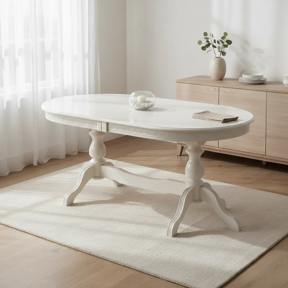 Розкладний механізм: Зручна система трансформації дозволяє швидко збільшити корисну площу столу, роблячи його чудовим рішенням для прийому гостей або сімейних обідів.