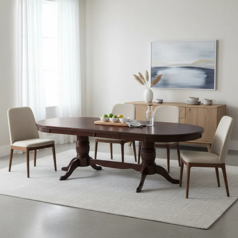 Розкладний механізм: Зручна система трансформації дозволяє швидко збільшити корисну площу столу, роблячи його чудовим рішенням для прийому гостей або сімейних обідів.