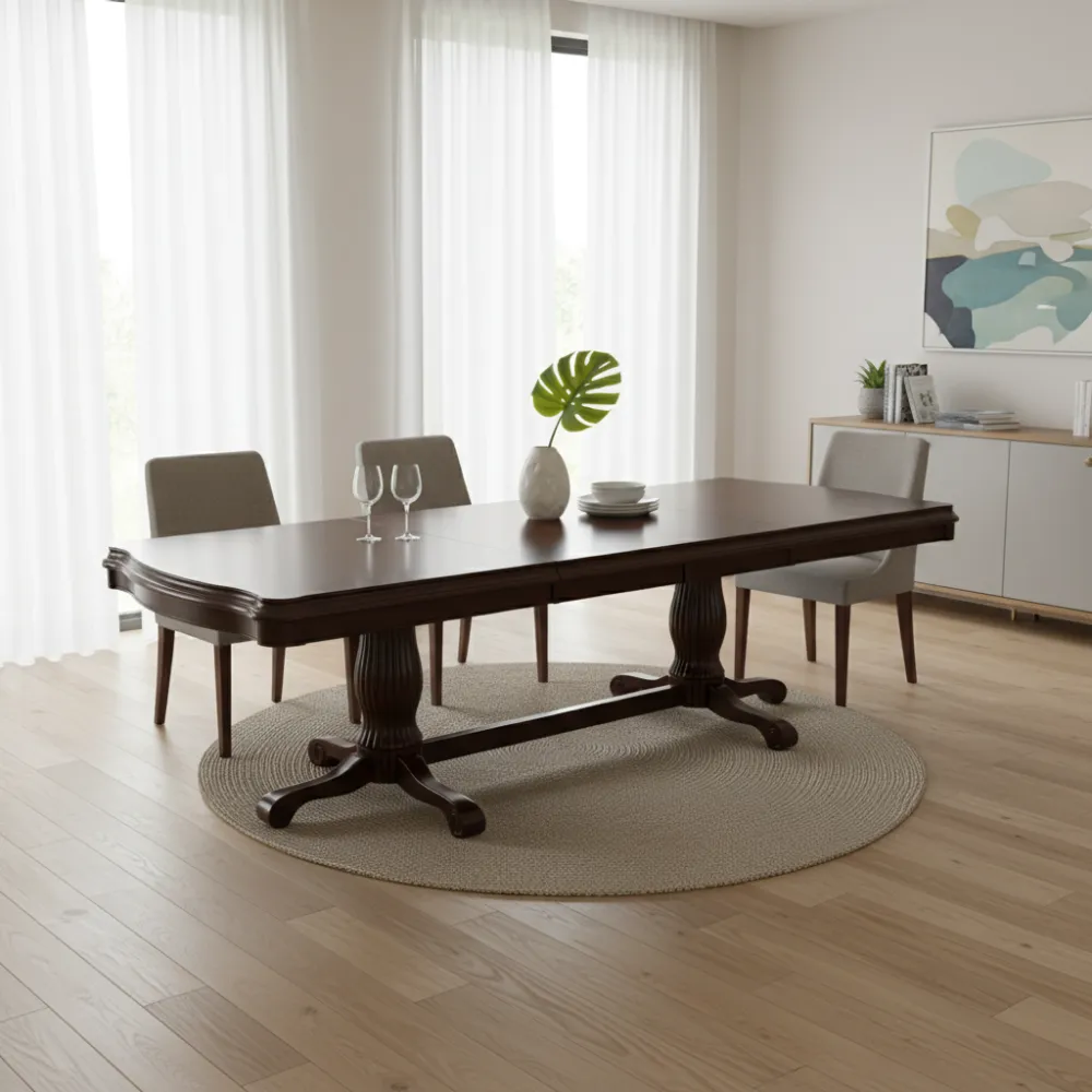 Розкладний механізм: Зручна система трансформації дозволяє швидко збільшити корисну площу столу, роблячи його чудовим рішенням для прийому гостей або сімейних обідів.