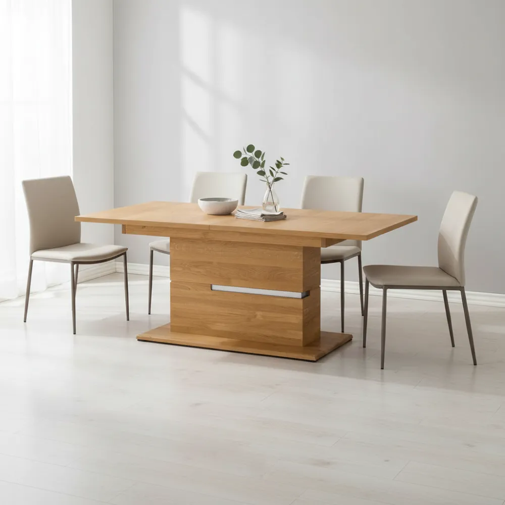 Розкладний механізм: Зручна система трансформації дозволяє швидко збільшити корисну площу столу, роблячи його чудовим рішенням для прийому гостей або сімейних обідів.