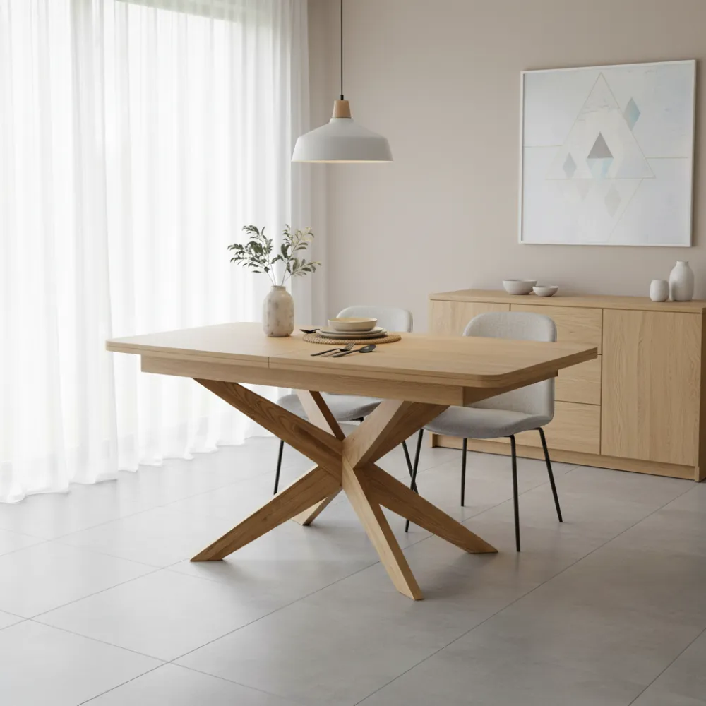 Розкладний механізм: Зручна система трансформації дозволяє швидко збільшити корисну площу столу, роблячи його чудовим рішенням для прийому гостей або сімейних обідів.