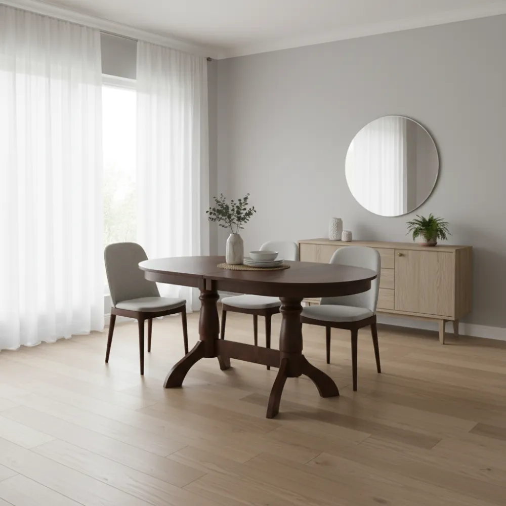 Розкладний механізм: Зручна система трансформації дозволяє швидко збільшити корисну площу столу, роблячи його чудовим рішенням для прийому гостей або сімейних обідів.