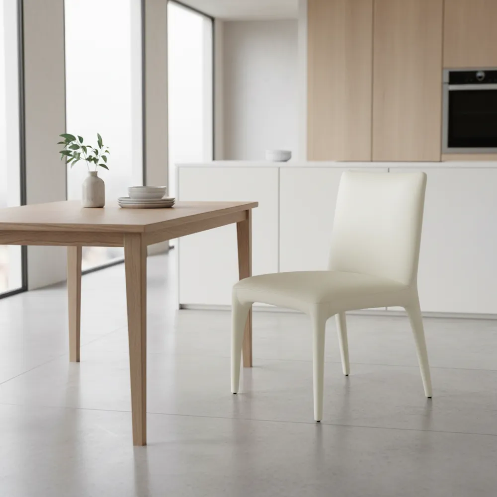 Наш дизайнерський стілець в еко шкірі кольору айворі є стильним і сучасним вибором для будь-якого інтер'єру. Колір айворі, що нагадує ніжний відтінок слонової кістки, додає стільцю вишуканості та легкості, легко вписуючись у різні дизайнерські рішення.