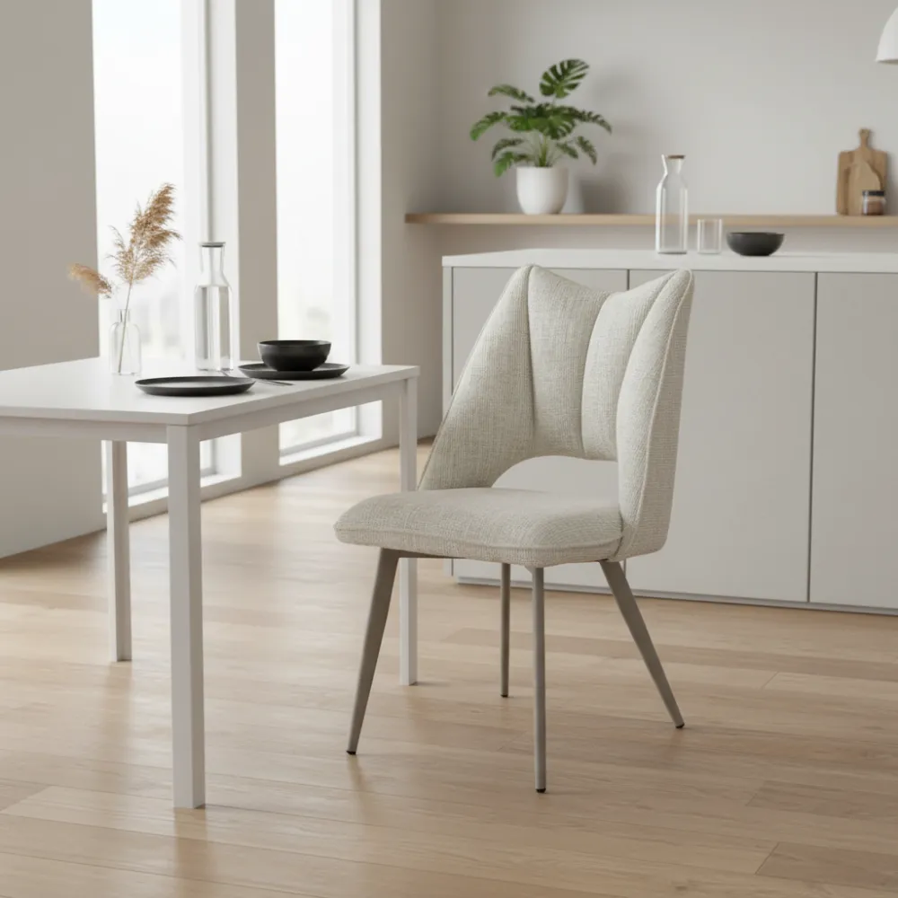 Оббивка з твида шамбрей в кольорі «тофу» додає меблям елегантності та сучасності. Цей стілець може стати центральним елементом вашого інтер'єру, підкреслюючи його стиль і створюючи враження вишуканості.