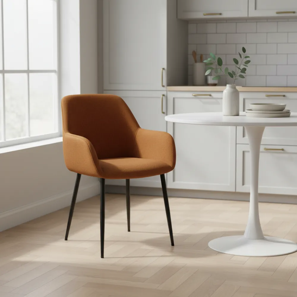Матеріал оббивки стільця — мохер, який відомий своєю м'якістю, довговічністю та приємною текстурою. Колір оббивки карамель має теплий і ніжний відтінок, що додає атмосфері легкості та затишку. Це ідеальний колір для створення комфортного і елегантного простору.