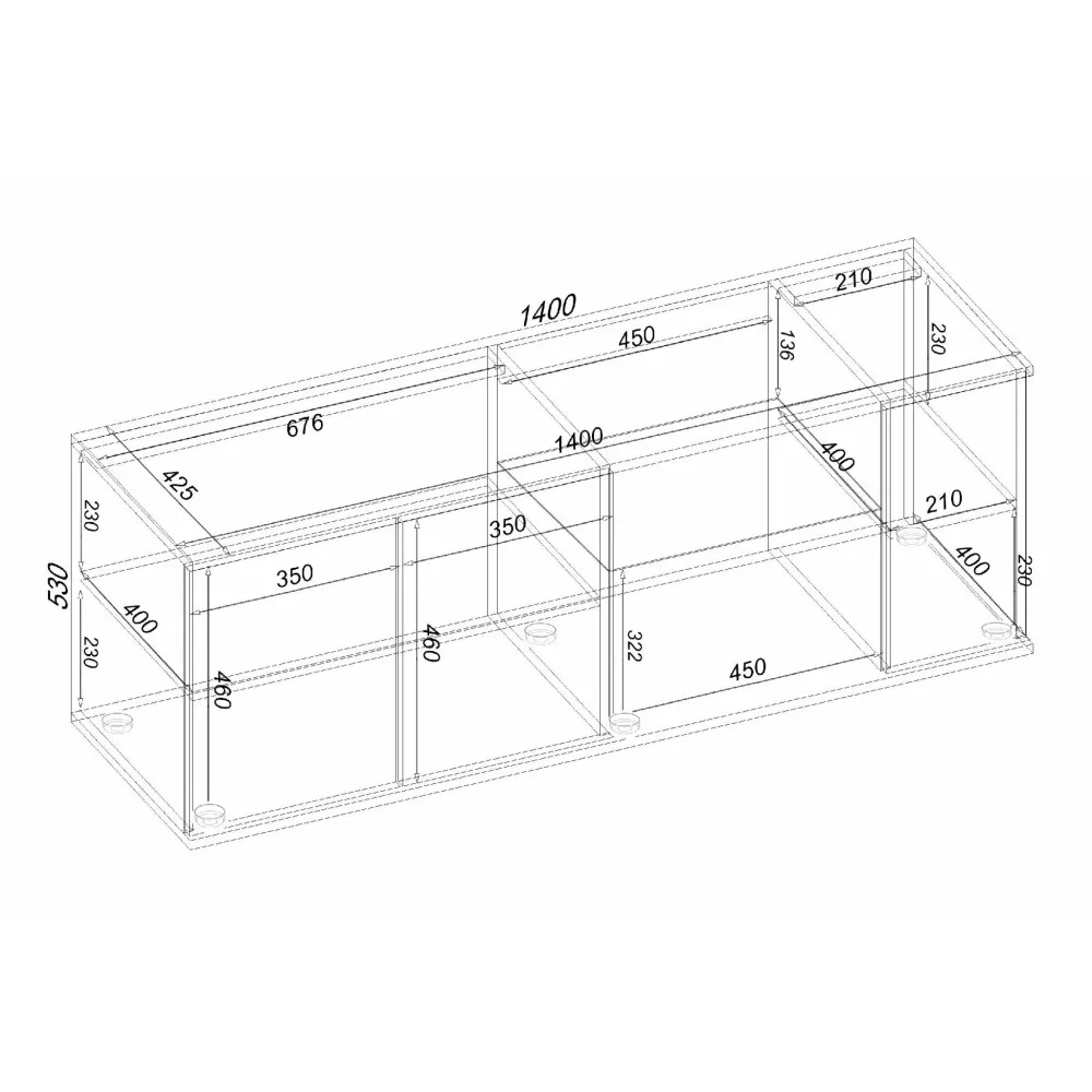 | Глибина, мм425 | Висота, мм530 | Ширина, мм1400 |