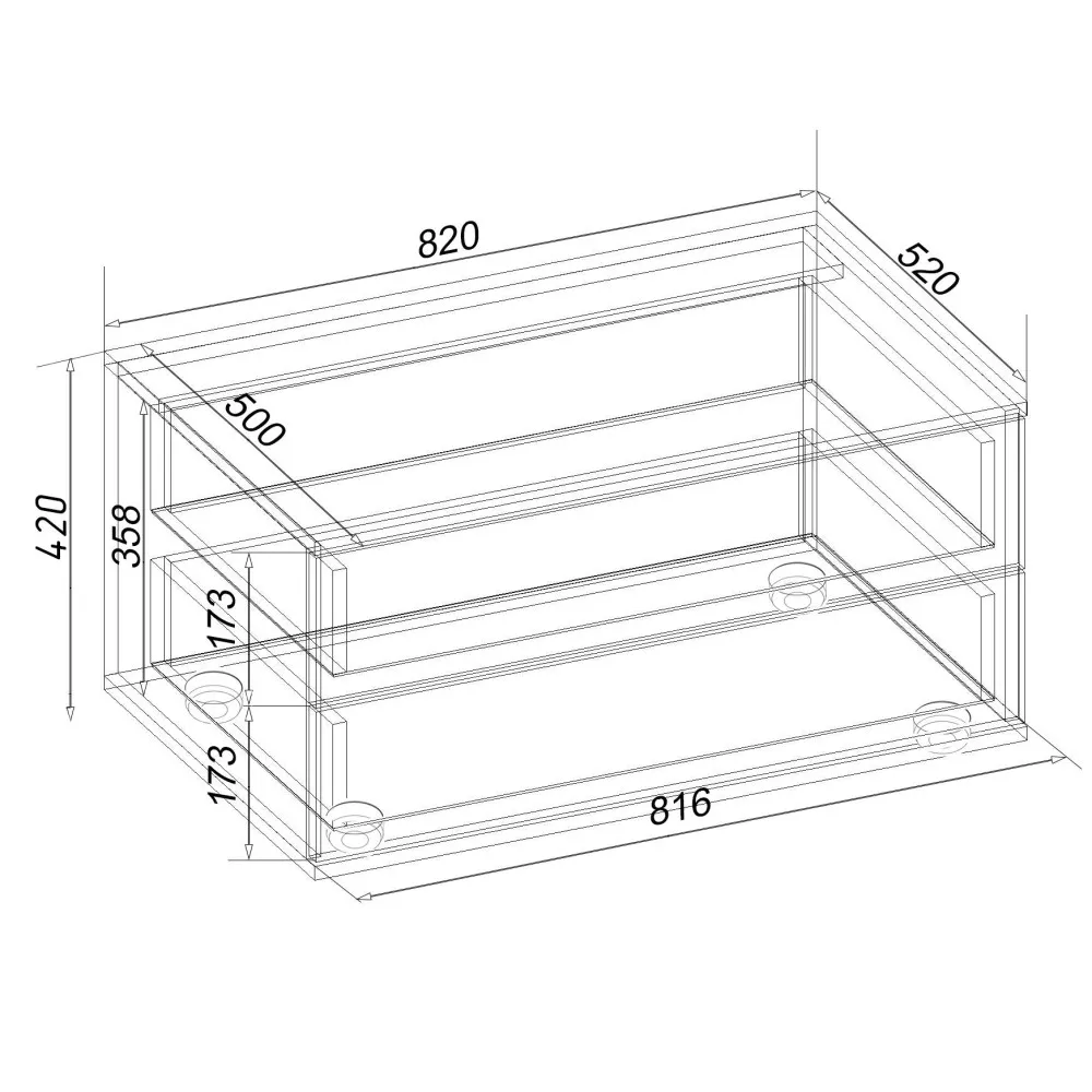 | Глибина, мм520 | Висота, мм420 | Ширина, мм820 |