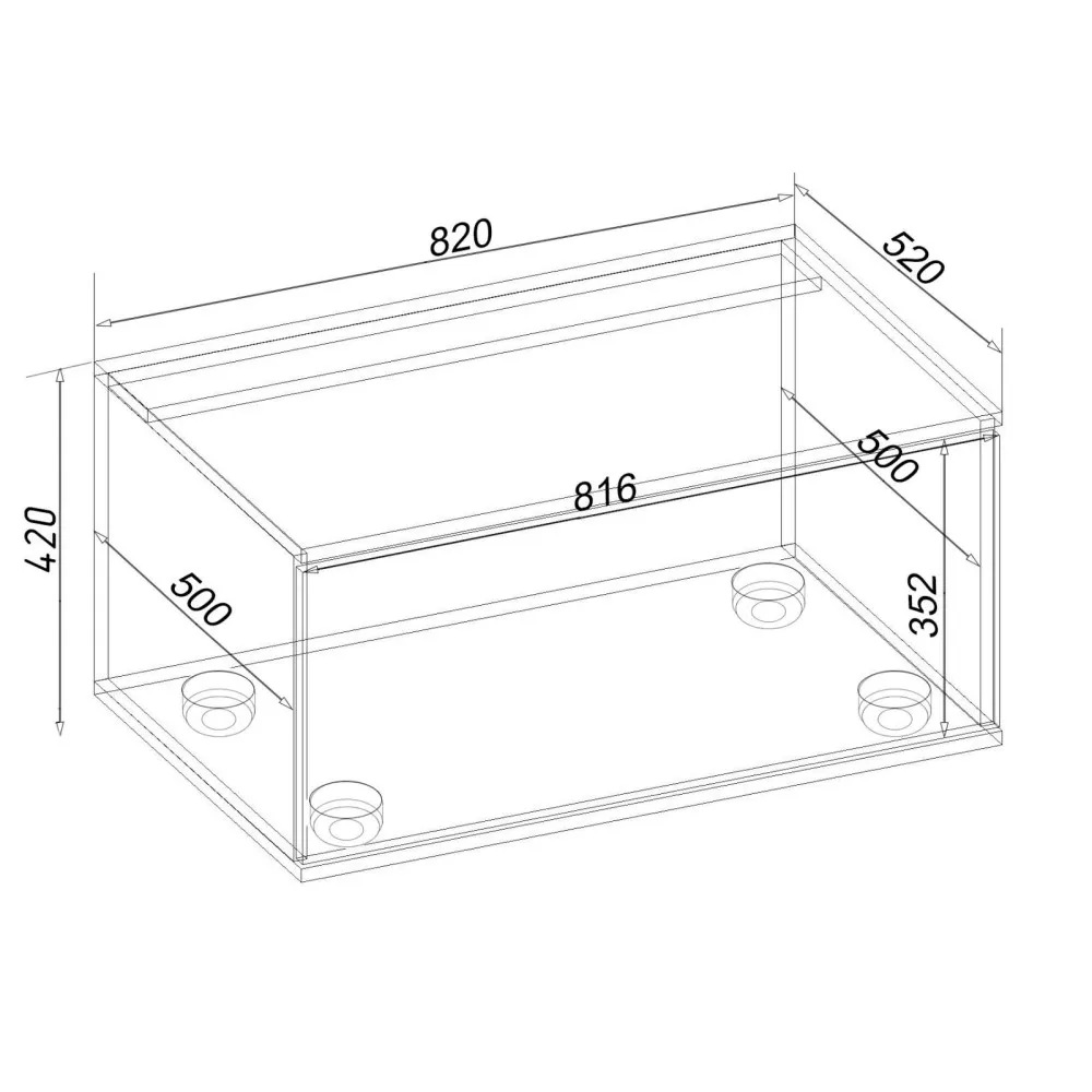| Глибина, мм520 | Висота, мм420 | Ширина, мм820 |